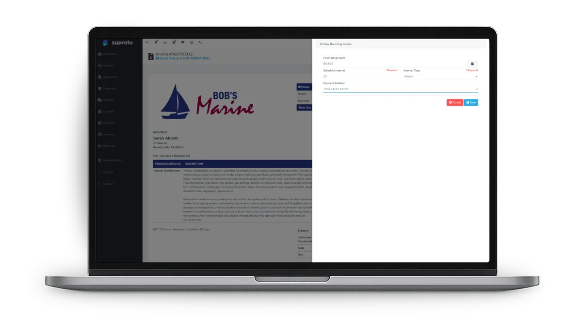 Close out reservations instantly with automated proration and settlement logic built in. Whether a boat leaves early, extends its stay, or shifts billing cycles, Suprata calculates everything automatically and processes the balance in seconds. No manual math, no adjustments to chase, just accurate, effortless billing every time.
